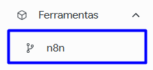 Dentro desse menu, está a opção N8n, uma ferramenta de automação de fluxos e integrações.