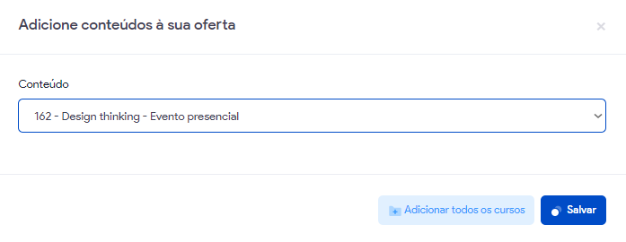 Ao selecionar a opção todos os conteúdos, todos os conteúdos da plataforma, inclusive os criados futuramente, serão adicionados ao combo.