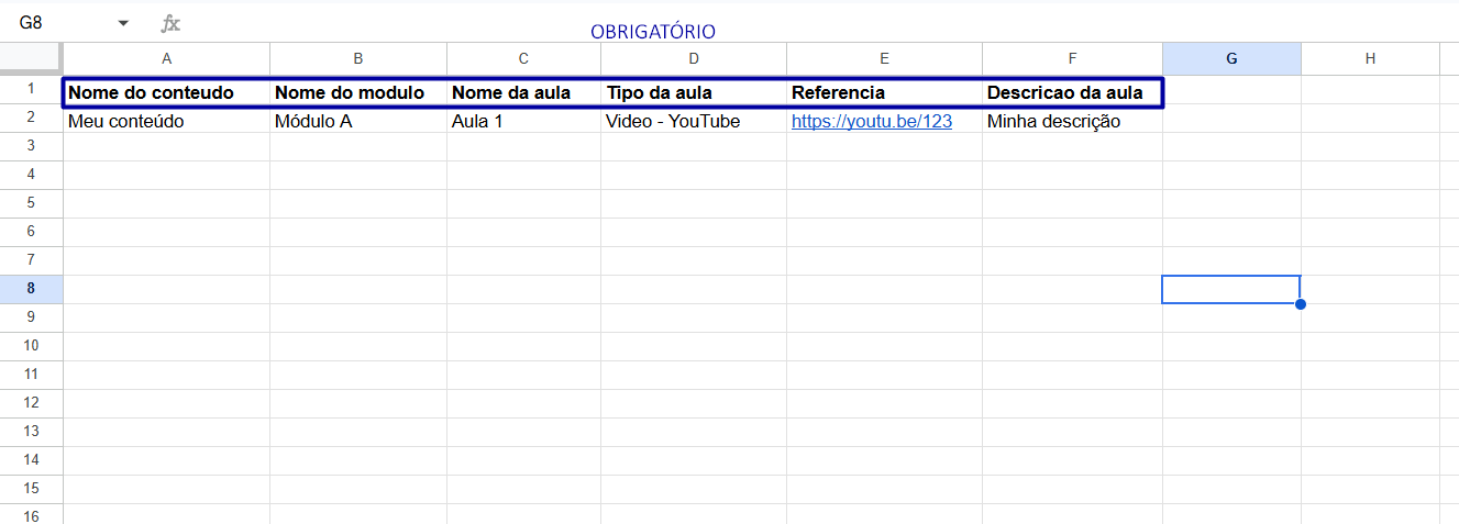 Mesmo que você tenha uma planilha parecida de outro sistema, baixe o modelo agora. Use-o como base. Cole seus dados dentro do modelo, nunca o contrário.