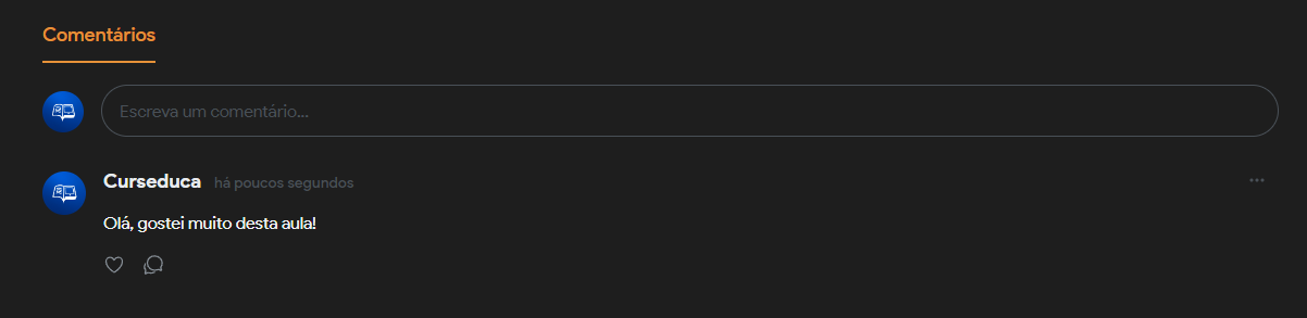 Caso você habilite, o aluno poderá comentar logo embaixo do vídeo da aula, como mostra aqui:
